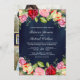 Romantic Pink Red Roses QR Code Navy Blue Wedding Invitation