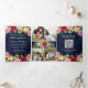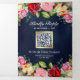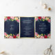 Romantic Pink Red Roses QR Code Navy Blue Wedding Tri-Fold Invitation