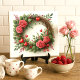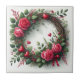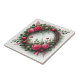 Romantic Pink Rose Wreath with Red Hearts Ceramic Tile