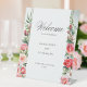 Romantic Pink Roses & Calligraphy Welcome Pedestal Sign