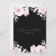 The dramatic black background of the invitation sets the stage for the enchanting top and bottom borders adorned with romantic pink roses. Enhanced by verdant green and delicate pink greenery, as well as leaves, this design captures the essence of nature's beauty and the enduring love shared by the couple.