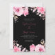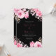 The dramatic black background of the invitation sets the stage for the enchanting top and bottom borders adorned with romantic pink roses. Enhanced by verdant green and delicate pink greenery, as well as leaves, this design captures the essence of nature's beauty and the enduring love shared by the couple.