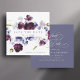 This elegant wedding save the date invitation features a watercolor bouquet of plum purple peonies, indigo blue, and olive green flowers with custom text on the back. For more advanced customisation of this design, please click the DESIGN TOOL BUTTON. Matching items are also available.