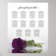 This elegant wedding seating chart has table assignments for 110 guests at 11 tables (10 people per table.) The design is beautiful, sophisticated, romantic and stylish. It features a single plum purple or eggplant coloured rose reflecting in water with waves and ripples. The title reads "please find your table" in lacy script calligraphy. There is space for the names of the couple and wedding date.
