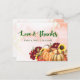 Romantic Pumpkin Autumn Leaves Fall Wedding Thank You Card . The Design has Love & thanks Written in classy script font along with the names of the newly weds on a background of autumn leaves , pumpkin and flowers like sunflower . The inside of the card has a personalised message which you can keep it as is or can change it with your own personalised message . Customise the card by changing the names of the bride and groom and the wedding date. For any further customisation , feel free to contact me at mypaperlove2021@gmail.com