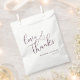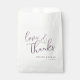 This wedding favor bag features a minimalist and romantic design with elegant calligraphy typography. The layout showcases the phrase "love & Thanks" in a deep purple hue, paired with customizable placeholders for names and dates in classic serif font. The color palette is simple yet sophisticated, emphasizing clarity and focus on heartfelt sentiments. Perfect for expressing gratitude at weddings or special occasions, this design conveys warmth and affection through its soft curves and balanced composition.