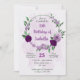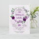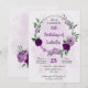 Beautiful romantic birthday party invitations featuring purple flowers and some green leaves .