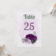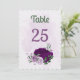 Beautiful romantic table number card featuring purple flowers and some green leaves .