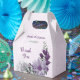 Beautiful botanical wedding favour box featuring romantic purple lavender and white flowers with green leaves