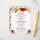 This beautiful and elegant wedding details card can be customized with important information for your guests such as wedding reception, hotel accommodation, transportation, directions, dress attire, itinerary, registry and more. The design features watercolor red, pink and orange roses with foliage. The text combines handwritten script and serif fonts for a stylish and modern look. This is perfect for a summer rustic wedding.