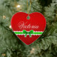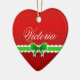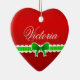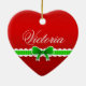 Romantic Red Christmas Design Cute Bow Custom Name Ceramic Ornament