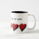 Red heart romantic coffee mugs & cups. A row of 5 large single red hearts, which are slightly off set to the left with light reflecting off the top edges line the bottom of this hot or cold beverage mug. The hearts appear to be three dimensional and have a text template situated above them to which you may add your own special endearing love message. IDEAL FOR: Romantic love themed events, parties, functions, shows & events. If you're looking for a way to tell the man or woman you love how you feel about them, then this range of stylish and elegant mugs is perfect. CUSTOMIZE IT: Add your own wording, images and/or logo and feel free to change the wording and to add a border or background colour. CUP STYLYES & COLORS: Choose from the wide range of available mugs, steins and travel mugs and the design will automatically be applied to the cup of your choice. MATCHING RANGE: Visit our web page to view the full range of trendy matching merchandise & stationery in this line. STORE WEB ADDRESS: http://www.zazzle.com/mensgifts* CUSTOM ORDERS: If you would like us to design something special for you, drop us a note on our homepage and specify what it is you require. COPYRIGHT: ©Robin Wood - All rights reserved.