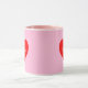Simple warm red heart on pastel pink coloured background. Graphic designed decoration idea. Aesthetic form commonly used to represent love, support, close bonds, friendship and admiration.