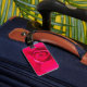 I was happy with the acrylic tag but it came with a thin leather strap to attach the tag to luggage (like a cat collar). I replaced the strap with a metal ring off of a key ring as the leather strap would come undone or break easily as luggage is sometimes handled without much care by airlines. Printing is great. Colours and positioning of the design I put on the tag were perfect. Very pleased.