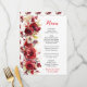Romantic Red Roses Floral Wedding Menu