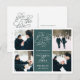 Simple and elegant, our Romantic Request photo save the date postcard features four of your favourite engagement photos arranged in a square format, with your wedding details in the centre in white on rich forest green. "Save the date" appears in white script typography with a chic heart worked into the design. Personalise with your wedding details, including names, wedding date, and location, and add additional details to the back, including your wedding website and return address.