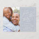 Simple and elegant, our Romantic Request photo save the date postcard features your favourite engagement photo on the left side, with your wedding details on the right. "Save the date" appears in white script typography with a chic heart worked into the design, against a light grey-blue background. Personalise with your wedding details, including names, wedding date and location, and add additional details to the back, including your wedding website and return address.
