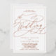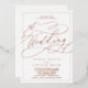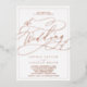This romantic rose gold foil calligraphy frame wedding invitation is perfect for a simple wedding. The modern classic design features fancy swirls and whimsical flourishes with gorgeous elegant hand lettered rose gold foil stamped typography and a formal foil frame.