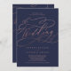 This romantic rose gold and navy all in one QR code wedding invitation is perfect for a simple wedding. The modern classic design features fancy swirls and whimsical flourishes with gorgeous elegant hand lettered faux rose gold foil typography. Save paper by including the details on the back of the wedding invitation instead of on a separate enclosure card. Include a QR code for your guests to check your wedding website, or to RSVP easily online (optional).