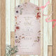 AVAILABLE WITH OR WITHOUT A QR CODE OR DINNER SELECTION OPTIONS. This design features a beautiful soft blush pink distressed background with a delicate pink, maroon, white, purple, and green floral sprays. It's romantic with a touch of vintage.