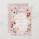 This wedding reception card design features a beautiful soft blush pink distressed background with a delicate pink, maroon, white, purple, and green floral sprays. It's romantic with a touch of vintage. Created by Simply Farmhouse Press, it's part of the Romantic Rose Pink Floral Wedding Suite of cards.