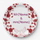 Celebrate love in style with this elegant wedding paper plate featuring a border of classic red roses and two doves symbolising eternal love. Personalise it with the names of the bride and groom to create a charming and memorable touch for your special day. Perfect for wedding receptions, engagement parties, bridal showers, or anniversary celebrations.