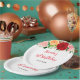 This beautiful and elegant plate features watercolor red, pink and orange roses with foliage. The text combines handwritten script and serif fonts for a stylish and modern look. This is perfect for a summer rustic birthday.