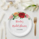 This beautiful and elegant plate features watercolor red, pink and orange roses with foliage. The text combines handwritten script and serif fonts for a stylish and modern look. This is perfect for a summer rustic bridal shower.