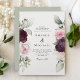 Make a statement with this beautiful watercolor roses botanical wedding invitation that features floral borders on each side of the elegantly placed text. Colours include pale blush pink, deep burgundy red and plum mixed with ethereal greenery and tiny white accent flowers. Personalise the text template with your information. The back side of this invitation is a coordinating sage green. Other colours are available, or you can change the background colour to white or any colour of your choice.