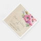 These vintage style romantic floral napkins feature a rustic parchment paper design with watercolor white and pink ranunculus flowers. A delicate bouquet of ranunculus and greenery is pictured on the top. Samples names of a newlywed couple and wedding date are printed in the top portion. You can personalise the napkins to include your own custom names or text.