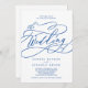 This romantic sapphire blue all in one wedding invitation is perfect for a simple wedding. The modern classic design features fancy swirls and whimsical flourishes with gorgeous elegant hand lettered typography.