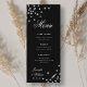 Matching products are available! This elegant wedding "Menu" card features a modern glitter confetti design, custom names, and date text. It is fully customisable and easy to use and personalise.