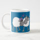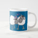 A fun Jumbo-sized Coffee Mug, with two comic sheep and hearts, from a hand-drawn illustration by Judy Adamson. You can change or delete the text and also change the blue background colour.