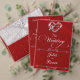 Design features an elegant crimson red background embellished with a delicate silver scroll heart and dividers. Stylish script place holders for the date are on the front, and response information on a white pearl back. Perfect for the simple to most elegant wedding. Also available with different colored backgrounds for your wedding theme colors. Designed to coordinate with the "Romantic Scroll Hearts & Calligraphy" Wedding Collection. To change details, click «Personalize». To move the text or change the text size, font, or color click «Click to customize further»