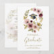 Romantic Soft Floral Wreath with Graduation Cap Invitation Party Card Design.