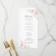 The soft, romantic hues of blush and pastel pink evoke an air of timeless elegance, setting the stage for a memorable dining experience. Each menu card is a testament to refined taste, complementing your wedding's aesthetic with its ethereal floral design.