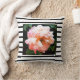 Romantic Spring Peach Peony on Black Stripes Cushion