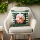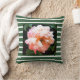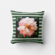 Romantic Spring Peony on Summery Green Stripes Cushion