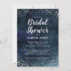 Elegant and romantic bridal shower invitation template card with faux silver glitters on navy blue watercolor ombre. The design resembles stars in a night sky. This constellation inspired design is great for fall or winter weddings.