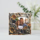 Cool and unique wedding wedding RSVP cards. Steampunk themed with gold and silver metal gears, flowers and a weathered wood background. Upload your favourite picture in the personalise area and edit the text on the back to add your wedding reception meal choices.