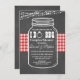 A trendy I D BBQ design for the engaged couple/bridal shower invitations. It features a chalkboard background with string lights and a white mason jar. Use Customise it tool to change the text to suit your party. This would be a perfect I DO Barbecue invitation for your backyard or garden shower! To find some other items which match this design, please, check out “I DO BBQ Chalkboard/Barn/Mason Jar and Gingham” Collection.