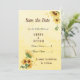 Celebrate your love story with this warm and romantic sunflower save the date card. Featuring soft golden watercolor tones and rustic sunflower accents, this design is perfect for country, farmhouse, or late summer weddings. A charming way to announce your special day with sunshine and elegance.