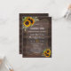 Rustic, Romantic card design featuring watercolour sunflowers bouquets, a semi-transparent shape with a textured frame, arrows with hearts and sunflowers as divider, all on an old barn background. Use Customise tool to add your info. Matching items can be found in my Rustic Sunflowers Old Barn Collection.