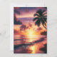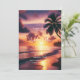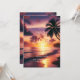 A breathtaking beach sunset scene featuring a golden and purple sky, calm ocean waves, and a black silhouette of a palm tree on the right. The warm hues reflect on the water, creating a romantic and serene atmosphere—perfect for a wedding invitation.