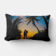 Enhance your space with this romantic lumbar pillow featuring a silhouette of a couple embracing under palm trees at sunset. The design captures the beauty of a tropical evening with warm golden skies and ocean views, making it a perfect accent piece for coastal, beach, or love-inspired home decor