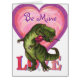 Animal Parade Tyrannosaurus Rex Dino in Love Be Mine Big Card features our heads and tails T-Rex dino carrying a rose in his mouth. On the front is the cute green dinosaur with a rose bud in his mouth standing in front of pink and purple hearts and the word, Love, with the customisable words, Be Mine, in purple above. Inside is the cute dinosaur from the back standing in front of a pink heart with the customisable words in purple, I love you all the way around my back, and Happy Valentine's Day, with enough room for you to add your own heartfelt message. Let that special someone know how much you love them this Valentine's Day.