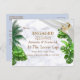 Vibrant, romantic, whimsical chic fiesta of shiny green foliage with a palm springs vibe with playful white silk and two wedding rings to give the design a chic and glamourous look to customise for an engagement party