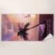A lovely romantic towel featuring an image of tropical sunset at the beach. Beautiful for anyone or any occasion and shown here as a wedding gift or favor for guests at a beach or destination wedding.