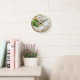 Vibrant, romantic, whimsical chic fiesta of shiny green foliage with a palm springs vibe with playful white silk and two wedding rings wall clock as a wedding momentum