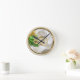 Vibrant, romantic, whimsical chic fiesta of shiny green foliage with a palm springs vibe with playful white silk and two wedding rings wall clock as a wedding momentum